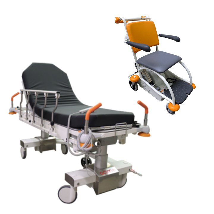 Brancard d’urgence à double colonnes hydrauliques avec traitement antibactérien. Il est intégralement escamotable, sans outils et en temps record. Il dispose d’un carter du châssis bas en ABS blanc, lisse avec traitement antibactérien, entièrement escamotable.