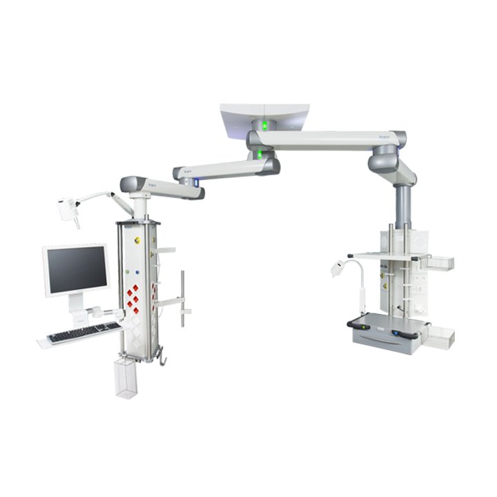L’appui de plafond a un bras facultatif de moteur. Il donne l’espace et élargit le rayon d’action pour le docteur et le personnel de soin. Son système bas jumeau a un couple des options de raccordement pour différents dispositifs médicaux. En outre, un module d’éclairage peut être intégré pour avoir la lumière directe.